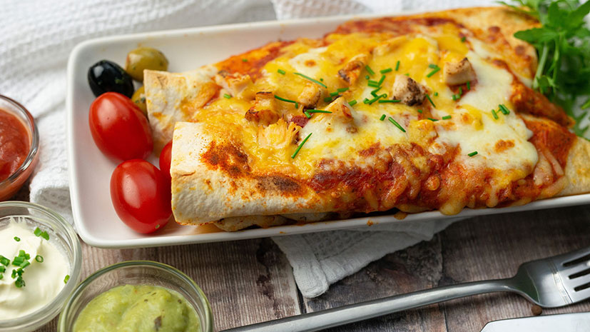 - Sprinkle the remaining Everyday Favourites Grated Cheese on top of the burritos for a lovely cheesy finish. We like a coloured Cheddar and mozzarella topping for a more authentic Mexican appearance!