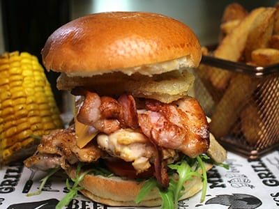 - Turn the chicken over after 6 minutes, continue cooking until fully cooked through. Cook the bacon until crisp.