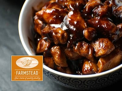 - Heat the sunflower oil in the wok and stir-fry the chicken thigh in 6-8 minutes until done. Add the teriyaki sauce to the preparation and let it evaporate on high heat until the sauce thickens and shines. Then stir in the ginger. Sprinkle the sesame seeds and the spring onions on the dish and serve.