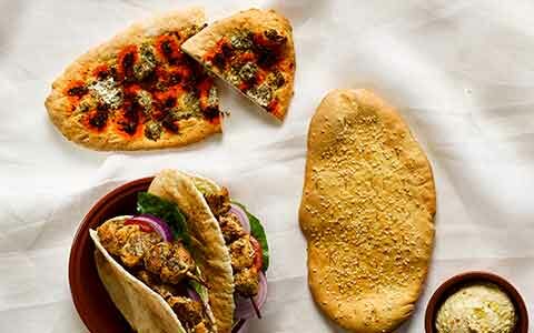 - Sprinkle the za’atar over and bake in a very hot pizza oven or convection oven on 200°C for 8-10 mins until cooked through