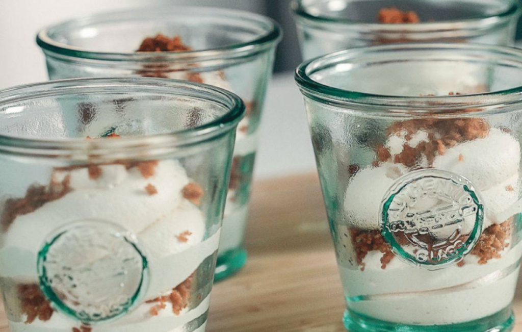 - In a suitable serving glass, pipe a layer of the cheezecake mix, top with the biscuit, and repeat to form two layers of each. Then serve.