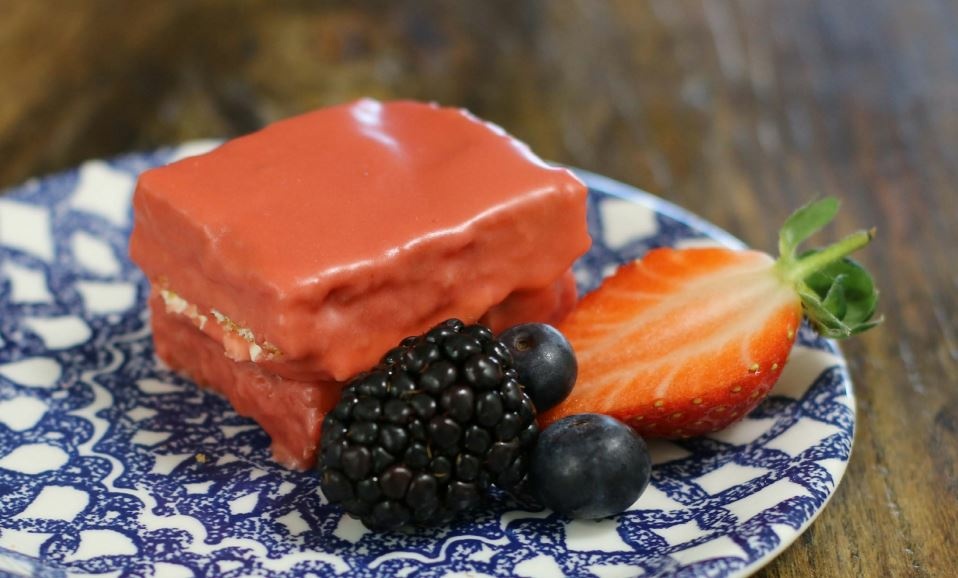 - Place the remaining icing sugar in another bowl with the lemon juice and red food colouring and mix together until you reach the correct consistency to coat the sponge. You may need to add a little water.