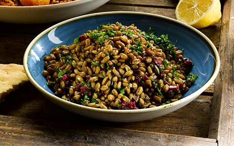 - Heat a large pan of water and cook the freekeh until tender then drain and refresh in cold water