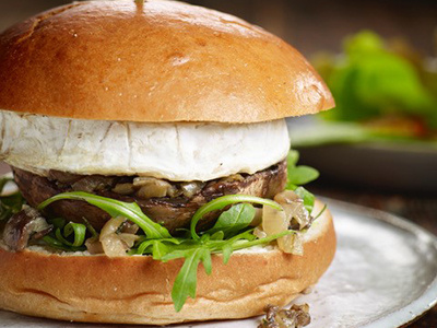 - Halve the burger buns and spread the mayonnaise. Place a filled mushroom and top with rocket leaves and the bun lids, serve immediately.