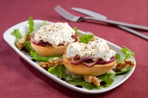 - Spoon the mix into the cooked pastry cases. Crumble the goat’s cheese evenly into the tartlettes.