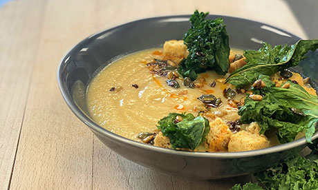 To make the soup- Peel and quarter the parsnips (not necessary if using frozen), mix with 1 tbsp olive oil and spread onto a baking tray, bake at 180°c for 20-25 minutes until cooked and golden brown.