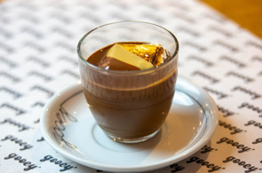 - Mix the hot chocolate and chai latte together and then top with the cream