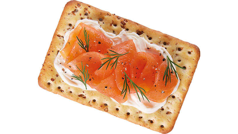 - Place a couple of Jacob’s Cream Crackers onto a plate.