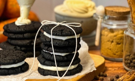 - Meanwhile, mix the ingredients for the cookie sandwich filling. Once the mixture is smooth, spread it on the bottom of half of the cookies. Use the other half of the cookies to make up the cookie sandwiches.