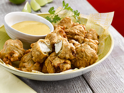 - Once the chicken is sufficiently marinated coat with batter and fry in small batches until all the chicken is cooked.