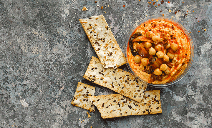 - Top with equal amounts of the chick pea mix and serve with crackers or bread of your choice.
