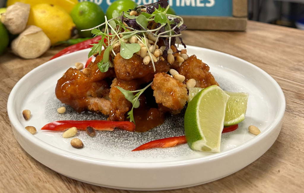 Crispy wings are coated in a rich, sticky Korean barbecue glaze, then finished with fresh chilli slices, toasted sesame seeds and a wedge of lime. Sweet, smoky and spicy with a satisfying crunch, this dish delivers bold flavour in every bite.