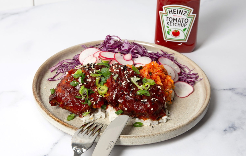 - While the chicken cooks, prepare the sauce. In a small saucepan whisk together SOSU SOY sauce, HEINZ Tomato Ketchup and SOSU Gochujang paste.