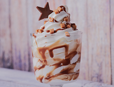 - Finish with a swirl of whipped cream, a drizzle of chocolate sauce and some more honeycomb pieces.