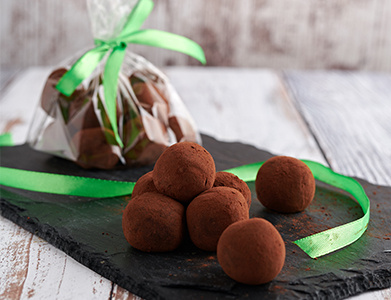 - Use a parisienne scoop to make the truffles or hand roll into balls and place them in the cocoa powder for dusting