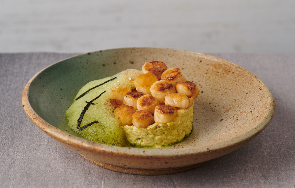 - Lightly marinate the scallops with the lemon juice, salt and pepper.