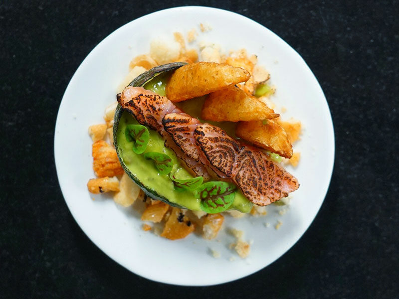 - Using a blowtorch, scorch the inside of the avocado skin to prevent discolouration