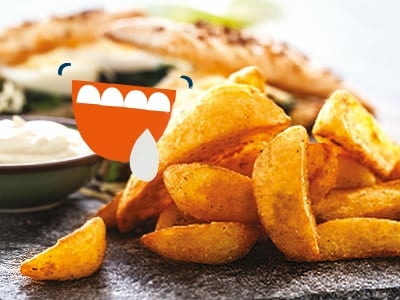 - Fry the Mediterranean wedges for 3 to 4 minutes at 175°C and serve with the tart.