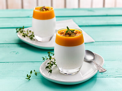 - Pour the mango puree into your chosen moulds and then pour in the cooled mixture, cover and place into the fridge to set.