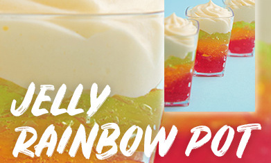 - Using a spoon, divide the three different jellies between the pots so they are layered in the pot. Then top with the Angel Delight Banana and chill for one hour.
