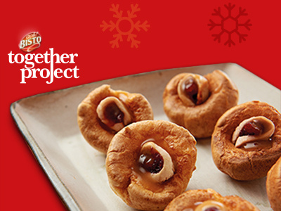 - Place turkey trimmings and cranberry sauce into each Yorkshire pudding and serve hot with Bisto turkey gravy.