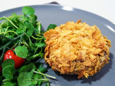 - Pat well to ensure good coverage of the corn flakes and that they stick well.