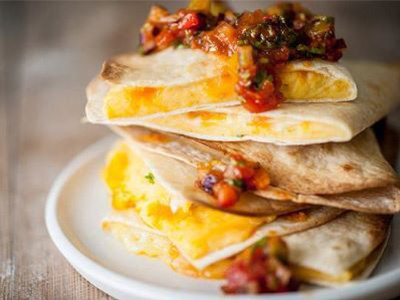 - Divide the potato mix between the tortillas, (try using an ice-cream scoop) and spread evenly over half the tortilla. Add the mozzarella to the top of the potato.