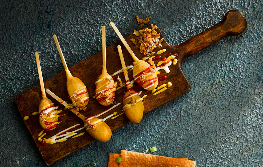 - Bake or deepfry the corndog.