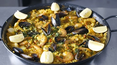 - Stir the saffron strands into the stock and set aside to infuse while you prepare the rest of the paella. Heat 1 tbsp oil in a paella pan or a large deep frying pan with a lid. Tip in the chorizo and fry for about 3 minutes until crisp and the oil has been released. Remove the chorizo and drain on kitchen paper, leaving the oil in the pan.