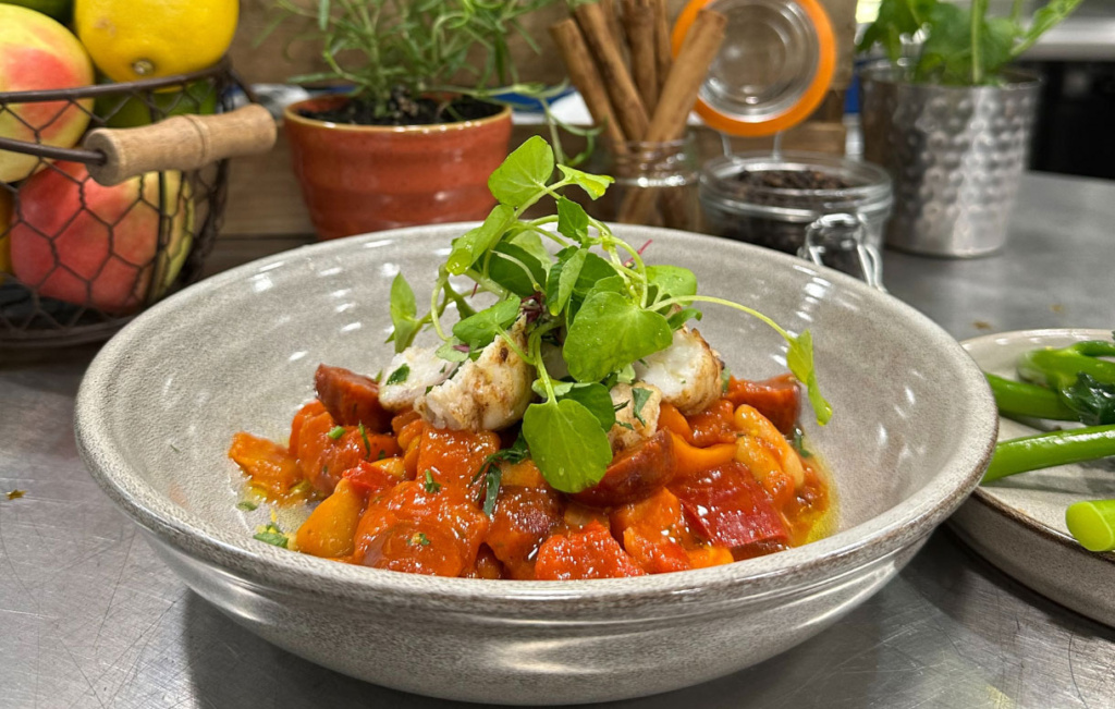 - Assemble the dish: Plate the stew, top with monkfish, then finish with gremolata, watercress, and a drizzle of olive oil.