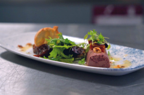 - To serve, ladle the hot soup into a soup bowl. Add a spoonful of the chorizo and pea mix to the centre of the bowl, and drizzle with the chorizo oil from the frying pan. Break the parmesan crisp into shards, and place a large shard in the centre of the pea and chorizo garnish