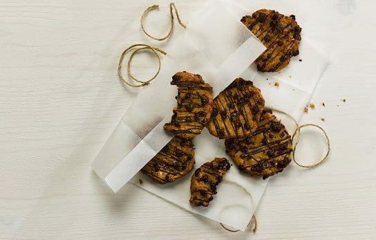 - Top with a few chocolate callets. Preheat the oven to 180°C and bake for 15-17 minutes or until cooked. Remove and leave to cool.