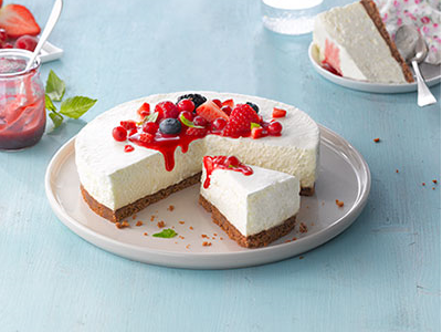 - To decorate: Just before serving decorate with the fresh berries and the dessert sauce.