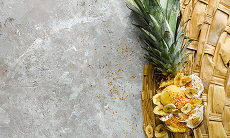 - Drizzle with passion fruit, crushed banana chips and toasted coconut