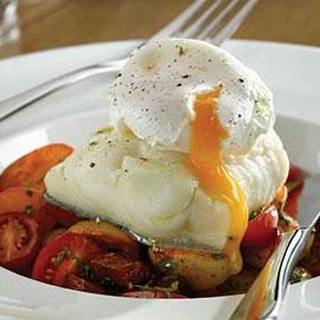 - To plate, place the sauté potatoes and chorizo into a bowl and add the poached haddock - season with salt and pepper then top with the poached egg.