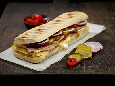 - Top with the remaining ingredients and cook in a hot panini grill until golden and the emmental is melted.