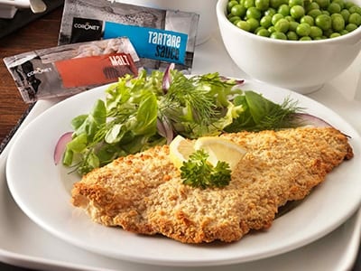 - Serve with Coronet malt vinegar and tartare sauce portions.