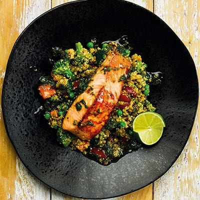 - Serve the Quinoa in your desired bowl and top with the cooked salmon fillet