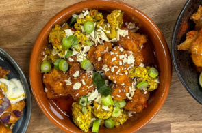 - In a small saucepan, mix together the refried beans, chipotle, cumin and garlic. Cook over a medium-low heat stirring often until hot. Then fold through the vegan pieces and continue to cook until hot. (Tip: you may need a little water).