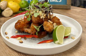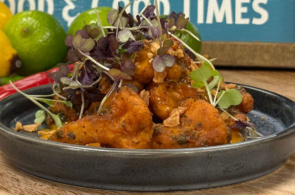 - Before serving, juice the lime over and garnish with micro red amaranth.