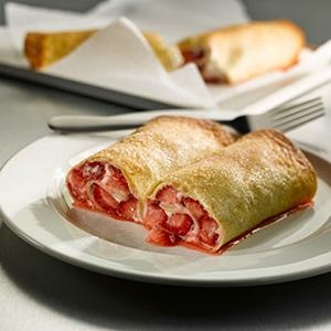 - Lay the tortillas out and spread with the cheesecake mix then place the strawberries on top and roll.