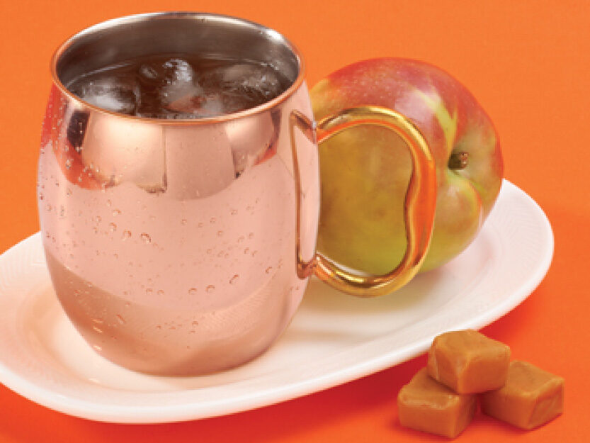 - Add ginger beer to fill mug. Garnish with apple slice and candied ginger, if desired.