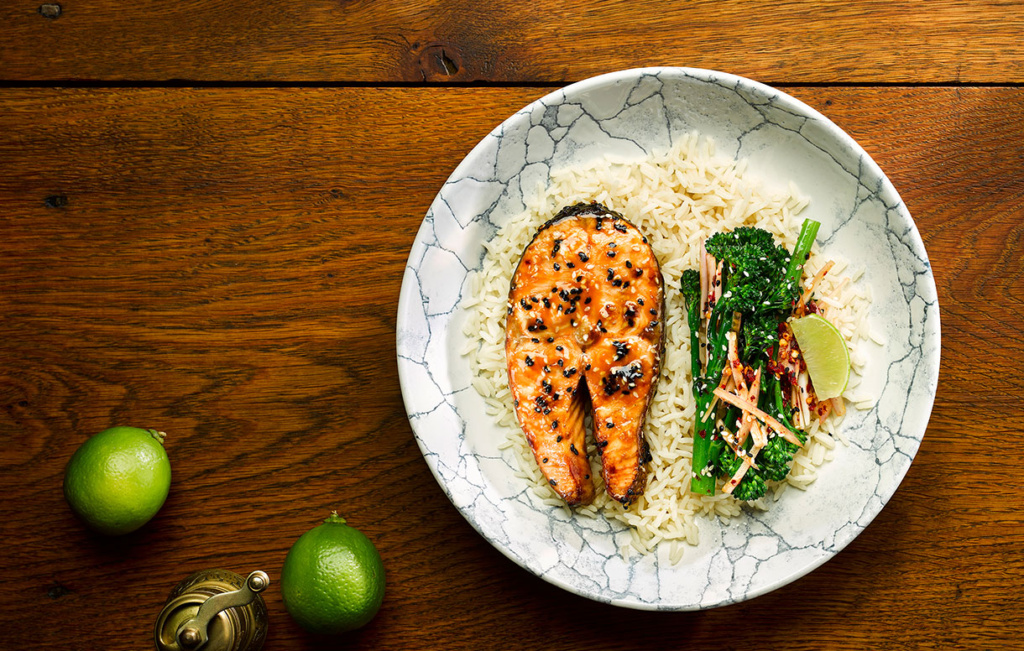 - Mix half the sesame seeds with the teriyaki sauce and glaze the salmon - cook for 15 minutes or until cooked thoroughly.