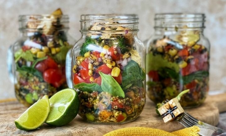 - Place the de-frosted salad mix into the jars.