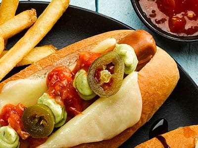 - Place the cheese slice in the bun placing the hot dog within the cheese.