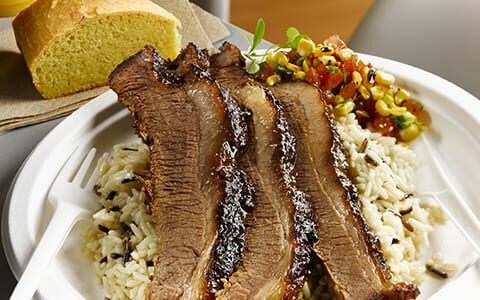 - To serve; carve a couple of slices of the beef and serve with some wild rice, burnt corn salsa and corn bread. Pour the cooking juices over the top