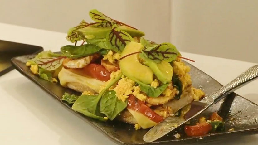 - To assemble- layer the tinga jackfruit on the fried tortillas and top with mozzarella style cheese then grill quickly, top with the black eye bean mix and layer - finish with the crispy avocado, mayonnaise and fresh coriander