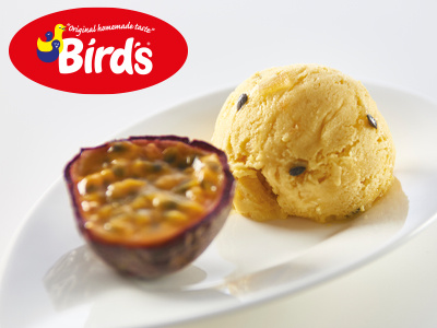 - Mix the Bird’s ice cream mix with the water and mango coulis, whisk for five minutes until correct consistency.