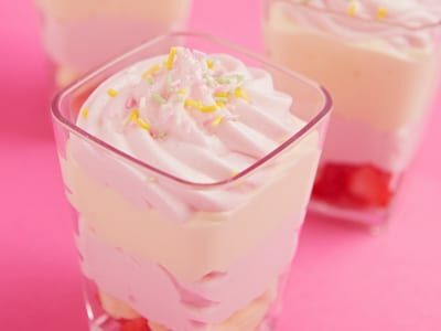 - Pipe the Angel Delight® Strawberry and banana in layers on top of the fresh fruit and chill for one hour.
