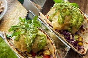 - Top with guacamole, salsa and fresh coriander
